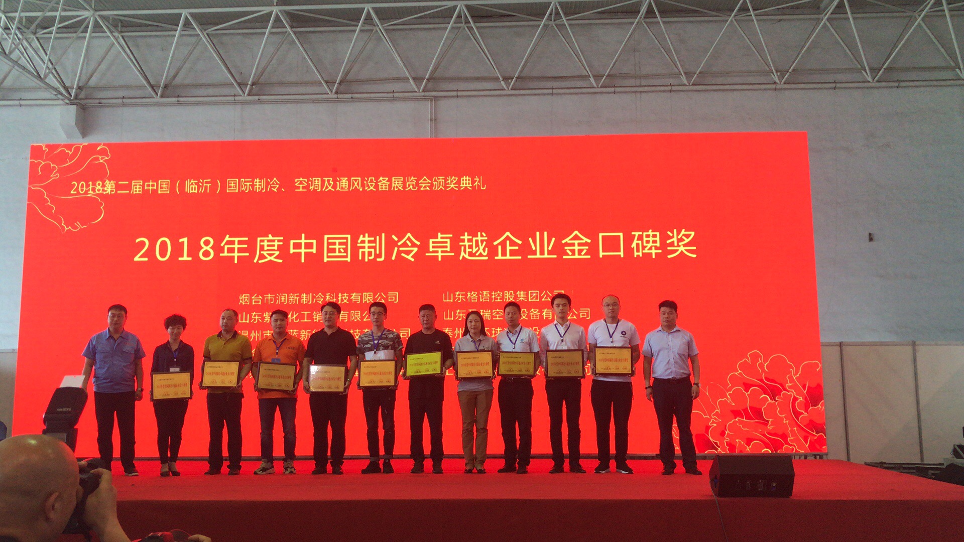 高峰論壇結束后,進行2018第二屆中國(臨沂) 國際制冷、空調(diào)及通風設備展覽會頒獎典禮。我司通過線上投票及線下產(chǎn)品實力展示贏得“2018年度中國制冷卓越企業(yè)金口碑獎”。